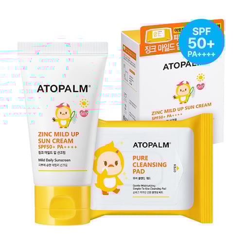 [ATOPALM] Zinc Mild Up Sun Cream SPF50+ PA++++ 65g + ATOPALM Pure Cleansing Pad 30Pads(62g)